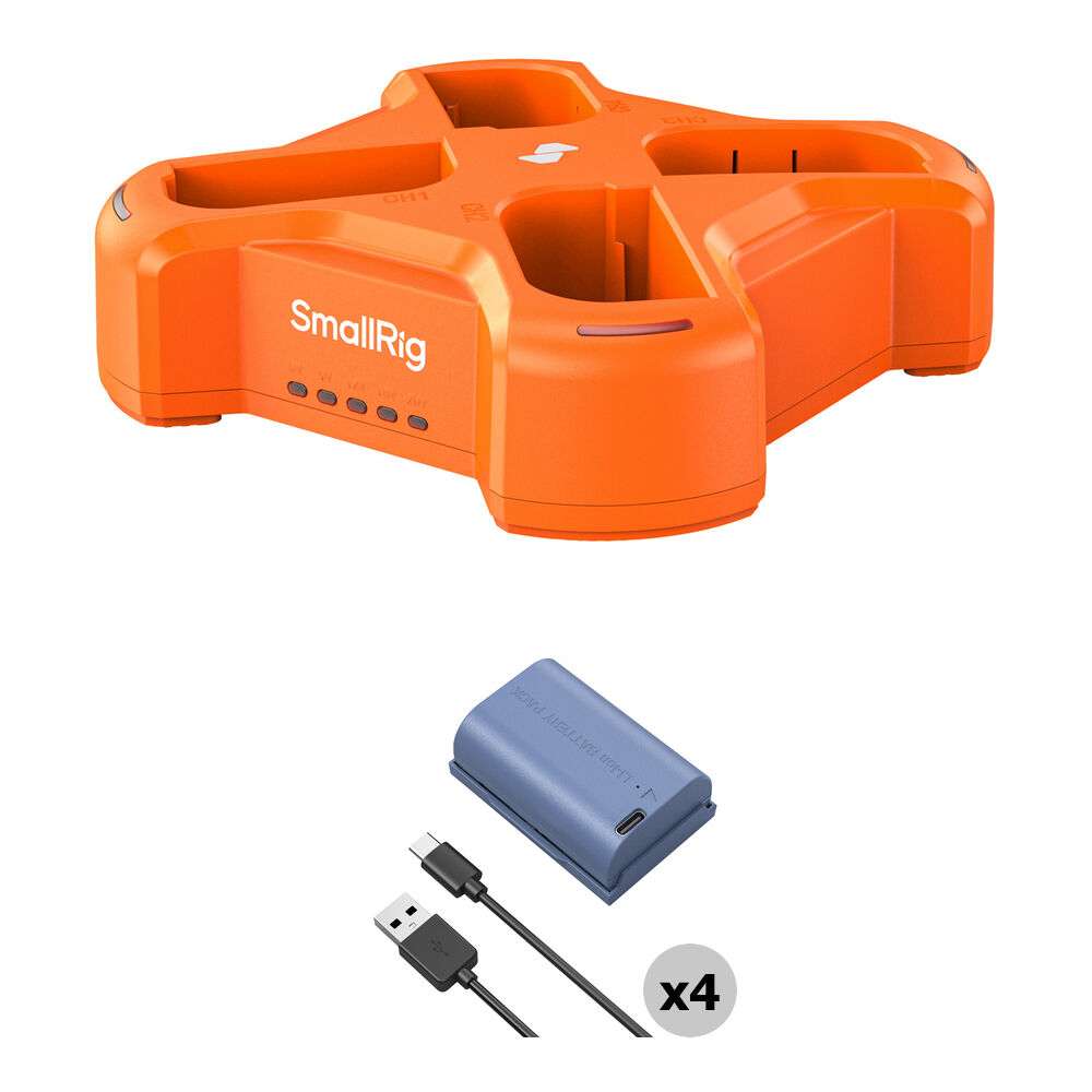 SmallRig LP-E6NH USB-C 4 Battery Kit with Quad Charger (Blue, Orange)